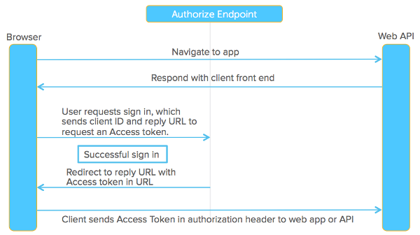 - The authorization grant is passed back to the application via browser redirect. This all happens on the front channel.
